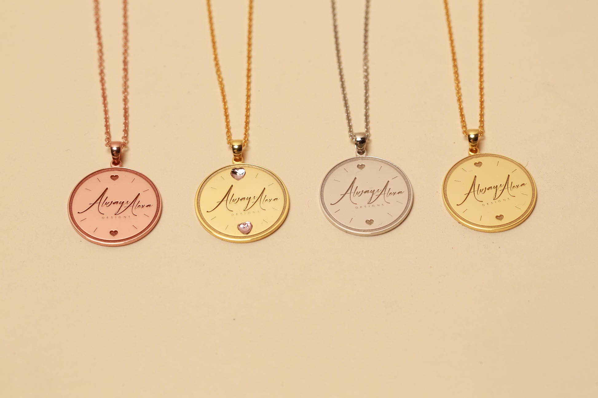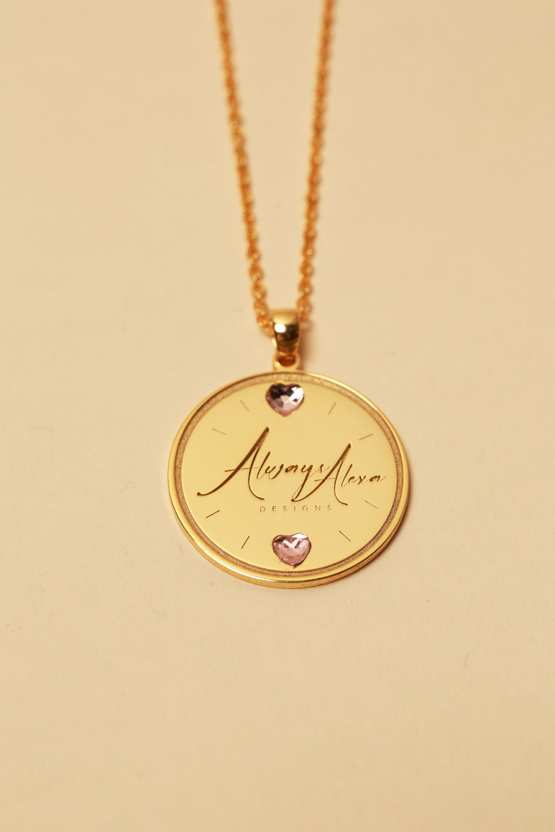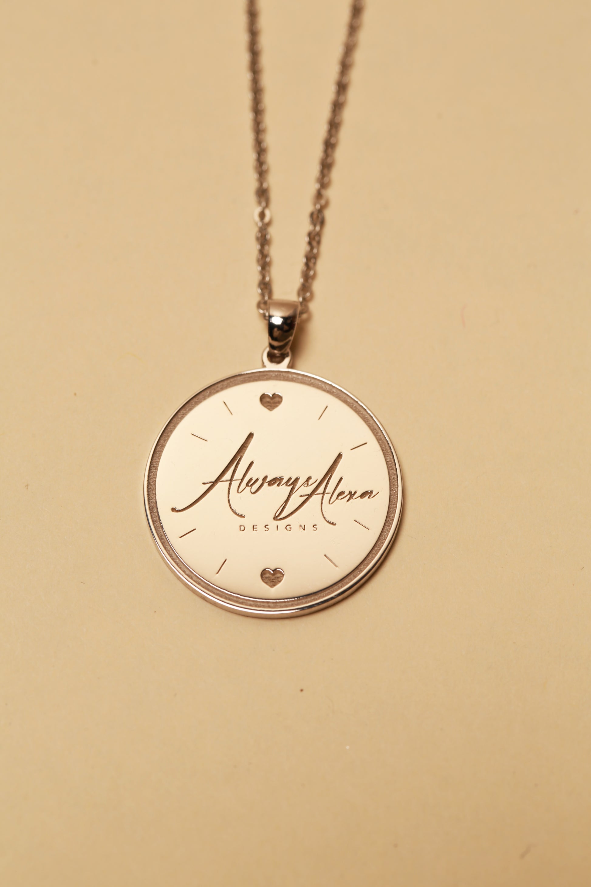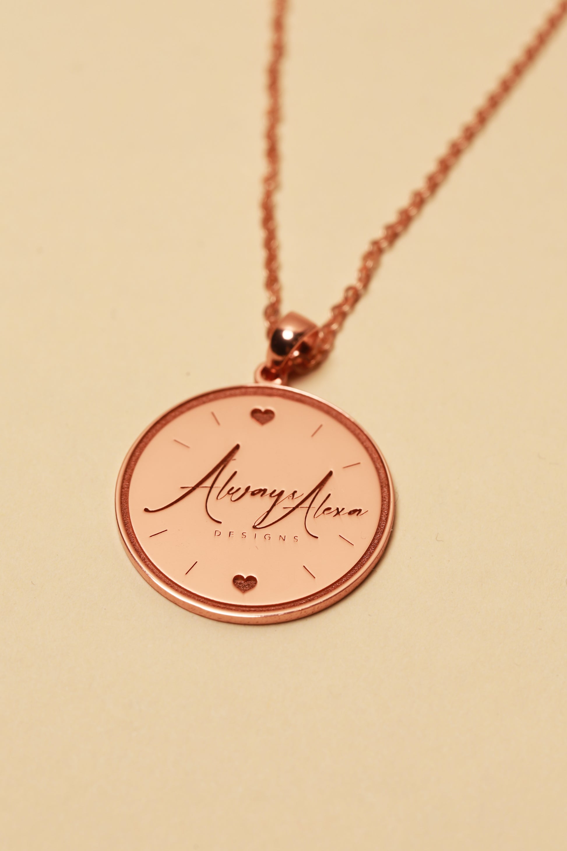 Adjustable Engraved Always Alexa Necklace With 1.5 inch Circle Pendant. Available in Gold, Silver & Rose Gold